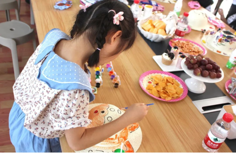 The first part of the activity is afternoon tea for children. Looking at a plate of delicate and delicious fruits and cakes, the children's eyes can not move, can not help but eat, gluttonous look, it is interesting. The site group also distributed straw hats, brushes, and pigments to the children. Under the company and guidance of mom and dad, the children gave full play to their imagination and waved happily on the straw hats with their small hands. Such a picture is really warm and beautiful. This? On top? Should colorful straw hats be at this time children? The most beautiful pattern in the world.